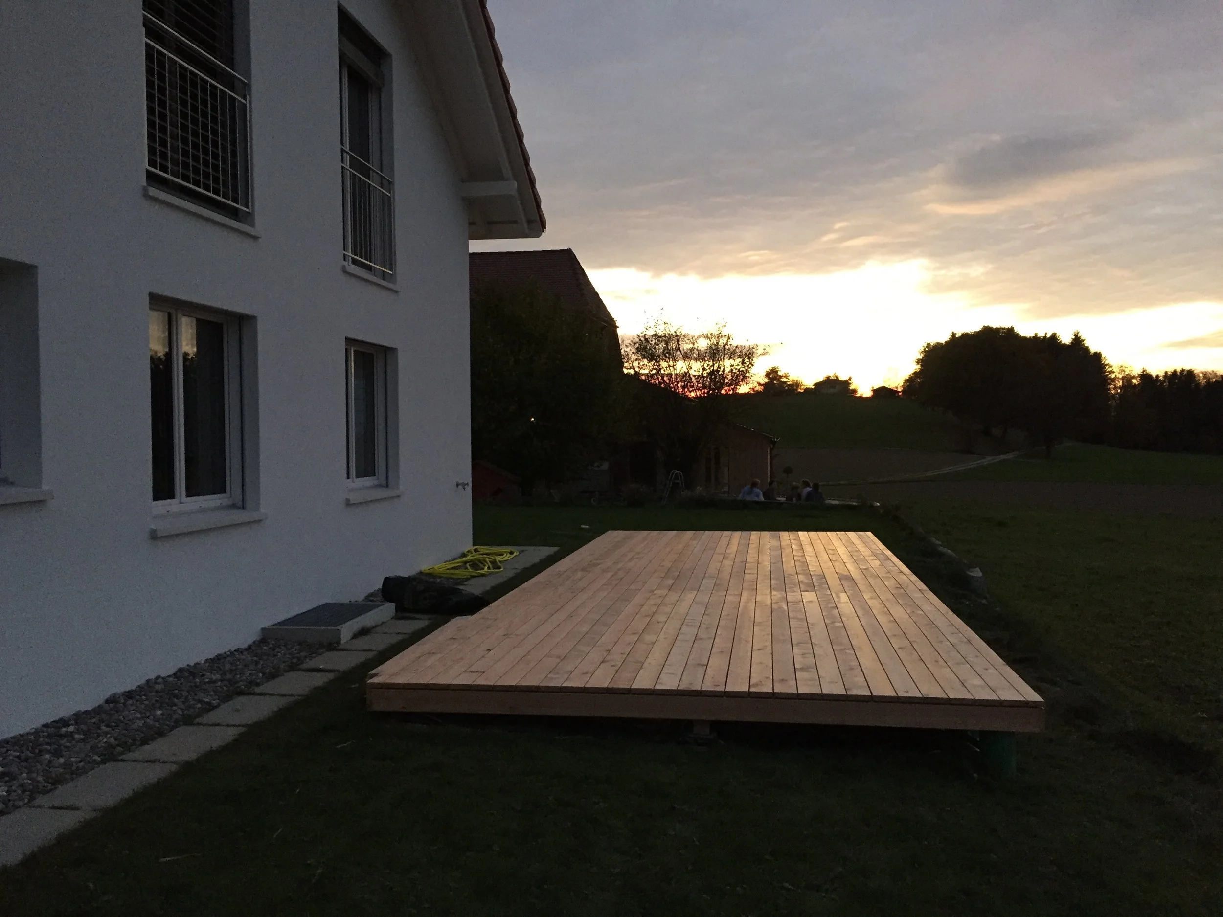 Im stetigen Austausch mit dir gestalten wir im Aussenbereich schöne holzige Lösungen rund um dein Zuhause. Von Terrassenböden über Gartentrennwände zu Aussenküchen planen wir gerne ein passendes Objekt für dich.